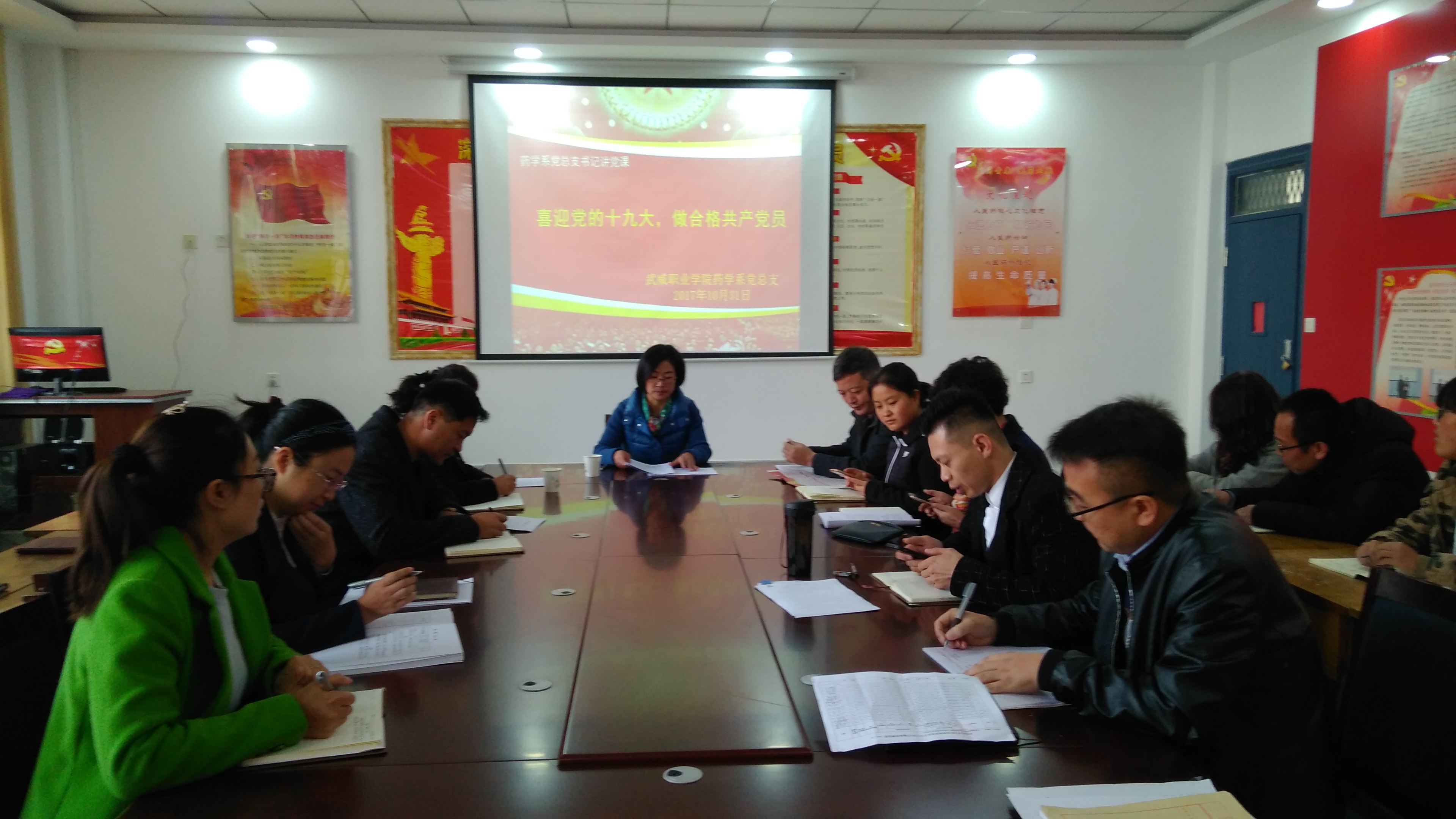 為深入學(xué)習(xí)宣傳貫徹十九大精神,10月31日,藥學(xué)系黨總支舉行了專題黨課學(xué)習(xí)活動。組織人事處處長、藥學(xué)系黨總支書記何毅為與會黨員作了專題報告。何毅以“喜迎黨的十九大,做合格共產(chǎn)黨員”為主題,從十九大報告中體現(xiàn)的新時代、新使命、新思想、新征程四個創(chuàng)新點入手,深刻而又生動的講解了“黨的十九大報告重大理論問題”的內(nèi)容和深刻含義,并對黨員如何理解黨的十九大做出重要指導(dǎo)。藥學(xué)系全體黨員以及第十八期入黨積極分子培訓(xùn)班成員參加了專題黨課活動。
