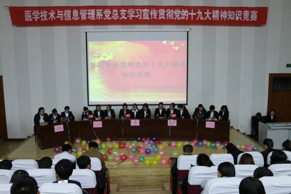 為推動全系師生深入學習貫徹黨的十九大精神,促進黨的十九大入腦入心,深刻領會和準確把握十九大精神實質(zhì)。12月14日,醫(yī)學技術與信息管理系黨總支開展了以“學習貫徹十九大精神”為主題的知識競賽。