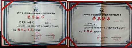 護理專業(yè)是我院優(yōu)質(zhì)校建設(shè)特色專業(yè)之一,為展示新時期我院教師高超的技術(shù)水平和良好的精神風(fēng)貌, 12月15日至17日我院王艷麗、張前兩名教師參加在山東省濱州職業(yè)學(xué)院舉行的首屆全國職業(yè)院校護理專業(yè)教師教學(xué)能力大賽。經(jīng)過激烈的比拼爭奪,我院代表隊獲得團體三等獎、王艷麗獲個人三等獎、張前獲優(yōu)秀獎。