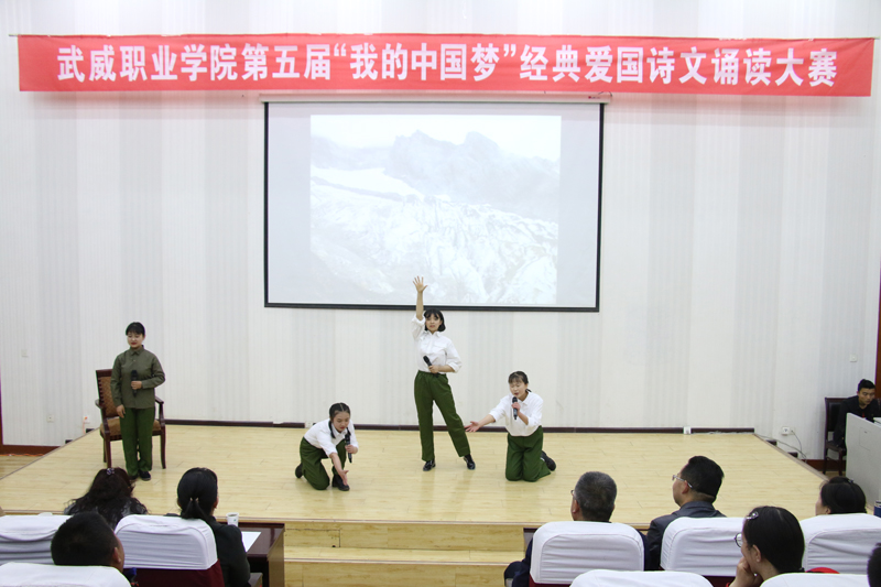 全場比賽以“我的中國夢”為切入點,誦詩抒情、借詞言志,傳承中華民族經(jīng)典愛國詩詞和優(yōu)秀傳統(tǒng)文化,培育與踐行社會主義核心價值觀。各參賽作品融入了歌曲、場景表演等多種藝術形式,進一步激發(fā)了同學們的愛國熱情和報國之志。經(jīng)過激烈角逐,醫(yī)學技術與信息管理系選送的作品《永遠的格桑梅朵》榮獲一等獎;人文藝術教育系選送的作品《我的墓碑》、護理系選送的作品《人民萬歲》榮獲二等獎;現(xiàn)代農(nóng)業(yè)技術系選送的作品《我的爸爸》、汽車工程系選送的作品《海棠花祭》、建筑工程系選送的作品《中國軍魂》榮獲三等獎。