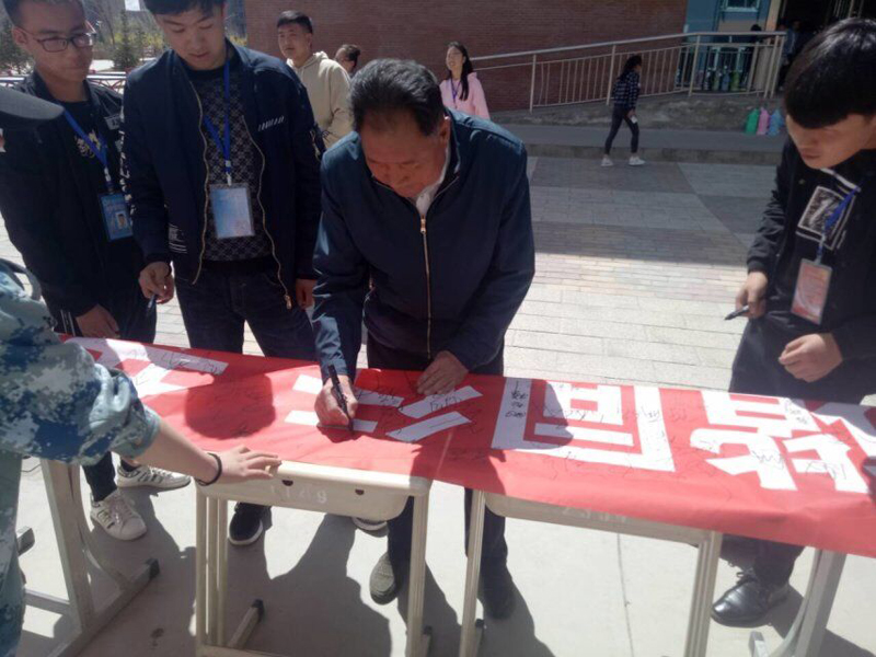 17日中午,在學(xué)院第一食堂、第二食堂門前舉行了“做文明學(xué)生、建文明校園、創(chuàng)文明城市”倡議簽名活動,近百名師生、群眾在橫幅上簽下了自己的姓名,并表示要用實(shí)際行動踐行環(huán)境保護(hù)意識,共建和諧美麗武威。