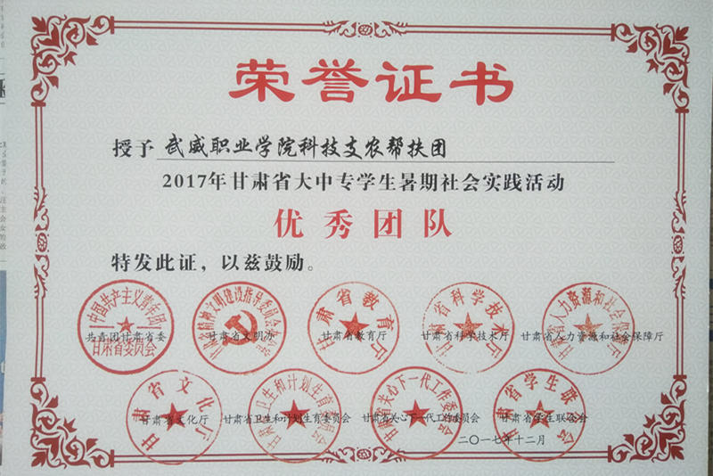 活動結(jié)束后,根據(jù)《關(guān)于開展2017年甘肅省大中專學生志愿者暑期文化科技衛(wèi)生“三下鄉(xiāng)”社會實踐活動的通知》要求,我系組織的科技支農(nóng)幫扶團集體和個人被評為甘肅省暑期“三下鄉(xiāng)”社會實踐活動先進集體和個人。