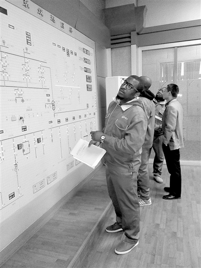 圖為該校2012級赤道幾內亞留學生在故縣水利樞紐電站中控室進行運行實習。