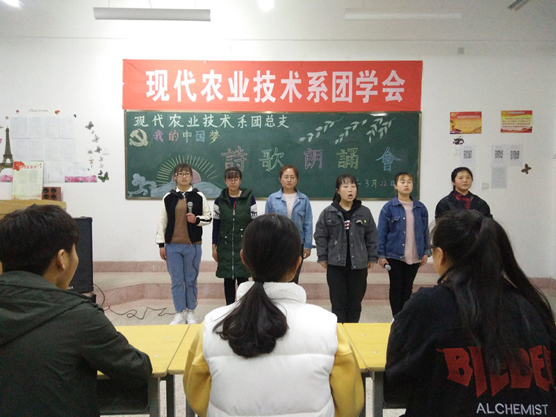 為弘揚愛國主義精神,3月22日晚,現(xiàn)代農(nóng)業(yè)技術(shù)系在行樹樓教學區(qū)109教室舉辦了?“我的中國夢”經(jīng)典愛國詩文誦讀大賽。黨總支書記晏素珍出席比賽并致辭,院系青年教師擔任評委。