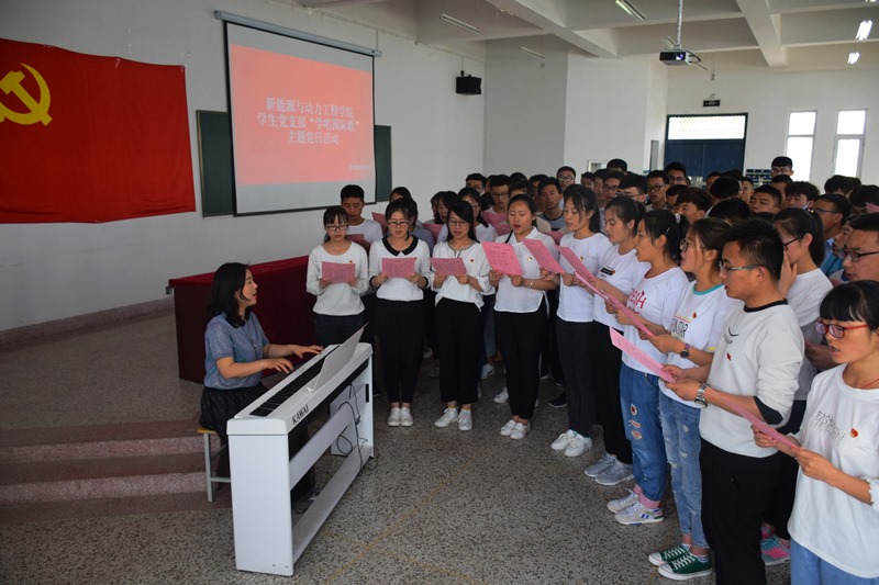 為更好地激發(fā)學生黨員的愛黨、愛國熱情,增強黨性,增強組織生活的儀式感和嚴肅性,新能源與動力工程學院學生黨支部于5月31日下午在明德樓001教室舉辦“重溫國歌,學唱國際歌”主題黨日活動。本次活動邀請人文藝術(shù)教育系王小娟老師做藝術(shù)教學指導(dǎo)。
