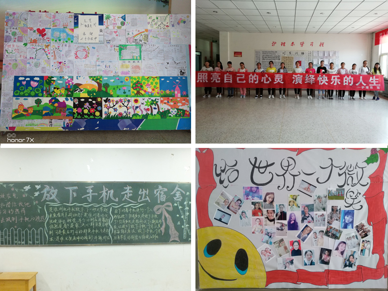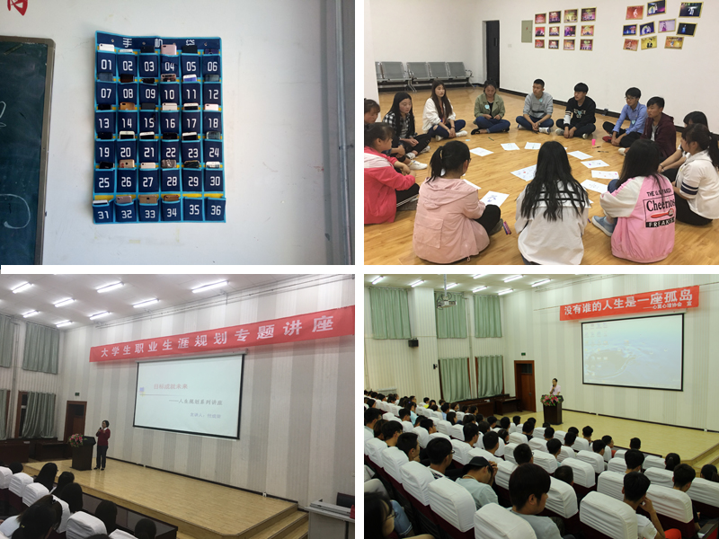 活動期間,學生工作處邀請專業(yè)老師面向全院學生做“職業(yè)生涯規(guī)劃”和“人際關(guān)系處理”專題講座4場,解答學生對所學專業(yè)和就業(yè)前景的迷惑,幫助學生解決人際交往中出現(xiàn)的各種困惑。通過團體輔導(dǎo)、沙盤游戲、放松減壓等活動緩解學生學習和生活壓力。各系積極配合心理健康教育咨詢中心組織召開了“愛護環(huán)境、低碳生活”主題班會,倡導(dǎo)大學生愛護校園環(huán)境,勤儉節(jié)約、低碳生活;開展了“放下手機,走出宿舍”宣傳教育活動,引導(dǎo)學生養(yǎng)成健康的學習生活方式;制作手機掛袋,要求學生上課收起手機,回歸課堂,提高學習效率。各系還根據(jù)專業(yè)特點開展心理知識競賽、心理健康知識手抄報、心理健康座談會、播放心理影片、最美笑臉收集等形式多樣的系列活動?;顒觾?nèi)容豐富,學生受益面廣,達到了預(yù)期效果。
