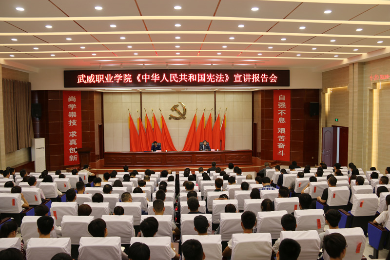 為深入推進(jìn)《中華人民共和國(guó)憲法》和《中華人民共和國(guó)憲法(修正案)》學(xué)習(xí)宣傳,提高廣大師生“學(xué)習(xí)憲法、尊崇憲法”的自覺(jué)性,6月7日,武威職業(yè)學(xué)院組織開(kāi)展專(zhuān)題宣講活動(dòng),邀請(qǐng)市檢察院檢委會(huì)專(zhuān)職委員郝建宏檢察官來(lái)學(xué)院作宣講報(bào)告。學(xué)院領(lǐng)導(dǎo)班子成員,副科級(jí)以上干部及師生代表共220余人參加了宣講報(bào)告會(huì)。報(bào)告會(huì)由黨委副書(shū)記趙明主持。