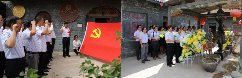 全體黨員參觀了紅色展覽館。講解員對(duì)照一張張革命歷史圖片和珍貴的紀(jì)念品,生動(dòng)講述著一個(gè)個(gè)紅色故事和感人事跡,熱情激昂地帶領(lǐng)大家高聲齊唱革命歌曲。每一位黨員認(rèn)真聆聽學(xué)習(xí),觀看革命歷史遺物,緬懷革命遺志。參觀結(jié)束后,全體黨員向偉大領(lǐng)袖毛主席銅像敬獻(xiàn)花籃,并面對(duì)黨旗重溫入黨誓詞。