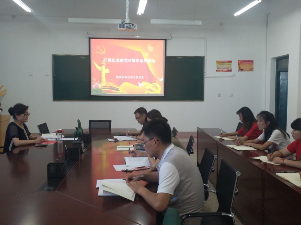建黨97周年之際,現(xiàn)代農(nóng)業(yè)技術(shù)系黨總支為深入貫徹落實習近平新時代中國特色社會主義思想和黨的十九大精神,推進“兩學一做”學習教育常態(tài)化制度化,組織全體黨員教師開展了主題黨日、集中學習研討、重溫入黨誓詞、專題黨課、黨員志愿服務等紀念建黨97周年系列活動。