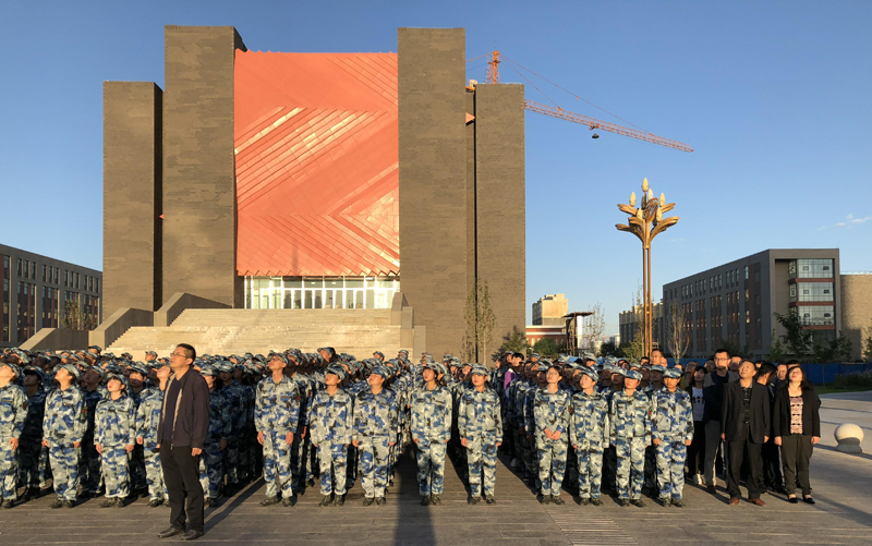 師生們精神飽滿,抬頭挺胸,伴著《義勇軍進(jìn)行曲》的響起,唱國歌、行注目禮,莊嚴(yán)肅穆。