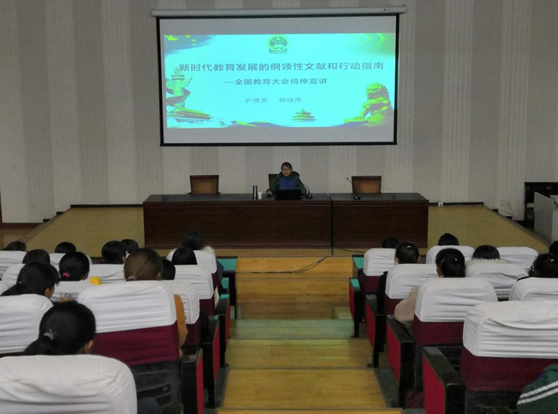 為深入做好全國教育大會精神宣講工作,根據(jù)學院安排12月24日護理系主任韓曉萍在正德廳為護理系200余人進行全國教育大會精神宣講。
