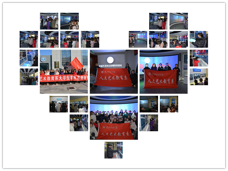 2018年12月7日下午,武威職業(yè)學院人文藝術教育系組織51名由老師、入黨積極分子、優(yōu)秀團學干部和入團積極分子組成的青年志愿者服務隊赴武威市涼州區(qū)禁毒教育基地參觀。展館運用現(xiàn)代展示手段和傳媒技術,寓嚴肅的禁毒教育主題于生動的展示體驗之中,讓同學們充分認識到毒品對個人、家庭、社會乃至國家、民族的危害。