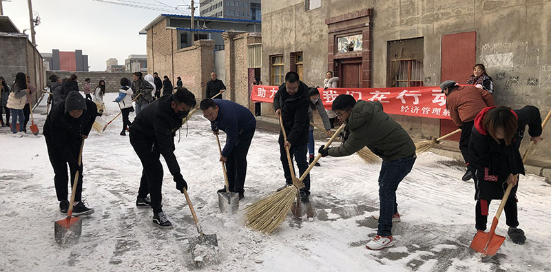 經(jīng)濟(jì)管理系黨總支開(kāi)展“助力創(chuàng)城”清理街道積雪主題黨日活動(dòng)