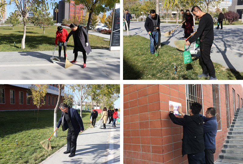支部全體黨員在大學(xué)生活動(dòng)中心門(mén)口、風(fēng)雨操場(chǎng)及校園馬路清掃落葉和垃圾,并對(duì)沿線(xiàn)衛(wèi)生死角進(jìn)行清理,對(duì)不文明行為進(jìn)行即時(shí)勸導(dǎo)。在教學(xué)樓、活動(dòng)中心、公寓樓、食堂等建筑物的醒目位置張貼20余張“創(chuàng)建文明校園”、“禁止吸煙”等標(biāo)志。通過(guò)開(kāi)展“創(chuàng)建文明校園”活動(dòng),進(jìn)一步提升我院“創(chuàng)建文明城市”迎檢和“創(chuàng)建文明校園”活動(dòng)效果。
