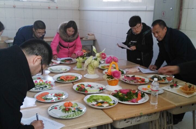 上午9:00—11:00中級烹調(diào)師理論考試在尚德樓115教室舉行,本次考試嚴格遵照人社局相關(guān)考試流程和要求,考試現(xiàn)場同學們沉著冷靜答題,沒有出現(xiàn)考生違規(guī)違紀現(xiàn)象。下午15:00—17:00實踐操作考試在經(jīng)濟管理系烹飪實訓中心進行,從食品雕刻、冷菜拼盤、熱菜制作三個方面全面考核了考生的烹飪技能。經(jīng)過同學們刻苦的訓練和充分的考前準備,在實操考核階段同學們都顯得信心十足。第一環(huán)節(jié)結(jié)束后,一道道精美的冷菜拼盤呈現(xiàn)在大家眼前,表現(xiàn)出同學們精湛的刀工和構(gòu)圖能力,第二環(huán)節(jié)是熱菜部分,同學們調(diào)味準確、火候到位、裝盤得當,充分展現(xiàn)了同學們嫻熟的烹飪技能。