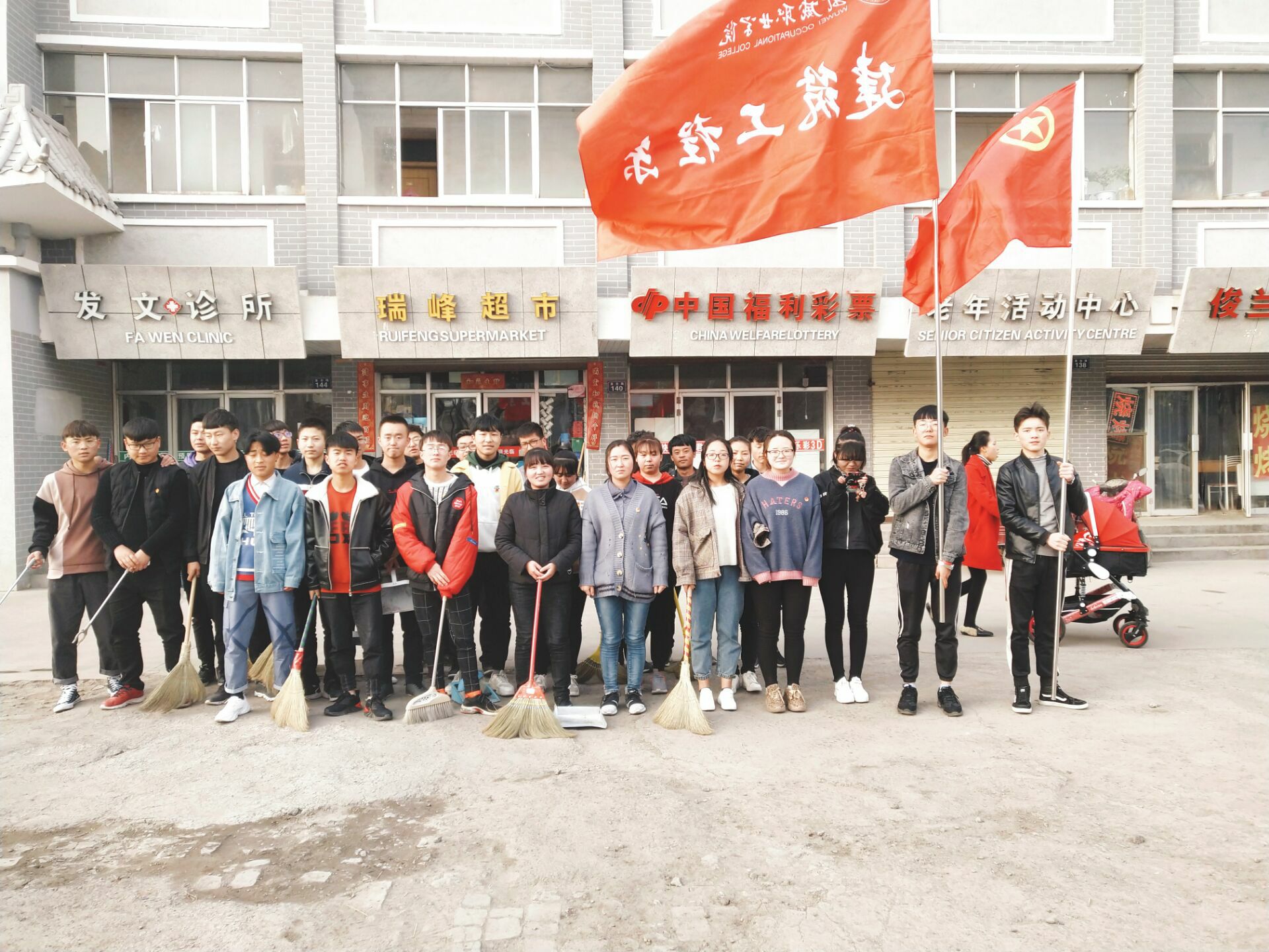 建筑工程系分團(tuán)委共組織30名志愿者到?jīng)鲋輩^(qū)學(xué)府路展開活動(dòng)。分解志愿任務(wù)后同學(xué)們很快進(jìn)入工作狀態(tài),這邊幾個(gè)人用掃帚把一些易于清理的煙頭、食品包裝袋清掃完畢,隨后就有人把垃圾桶推過來,進(jìn)行垃圾收集。同學(xué)們之間相互配合,甚是默契。天氣雖然寒冷,但是同學(xué)們臉上都洋溢著熱情的笑容。
