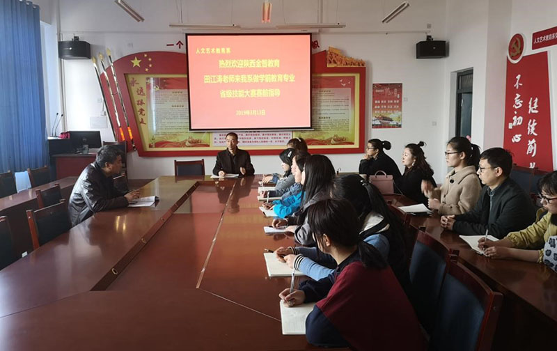 2019年3月13日下午,人文藝術(shù)教育系邀請陜西金智教育集團(tuán)講師、山西省“國培計劃”學(xué)前教育專業(yè)領(lǐng)域客座講師田江濤老師到我系進(jìn)行了學(xué)前教育專業(yè)省級技能大賽專題培訓(xùn)講座,并對2019年甘肅省職業(yè)院校學(xué)前教育專業(yè)技能比賽的流程進(jìn)行了指導(dǎo)。系副主任李欣、各專業(yè)教師及參賽學(xué)生參加。