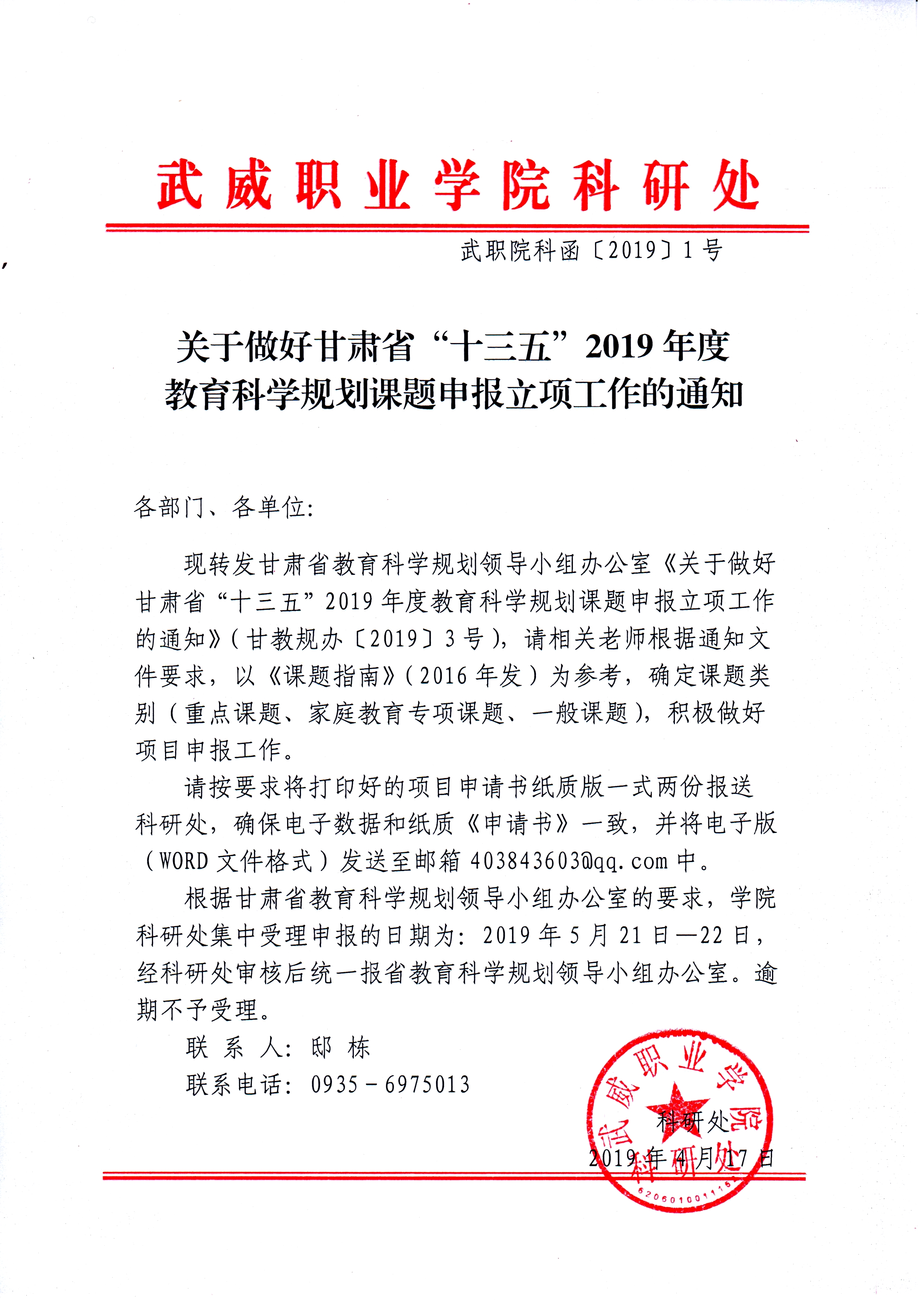 關于做好甘肅省“十三五”2019年度教育科學規(guī)劃課題申報立項工作的通知