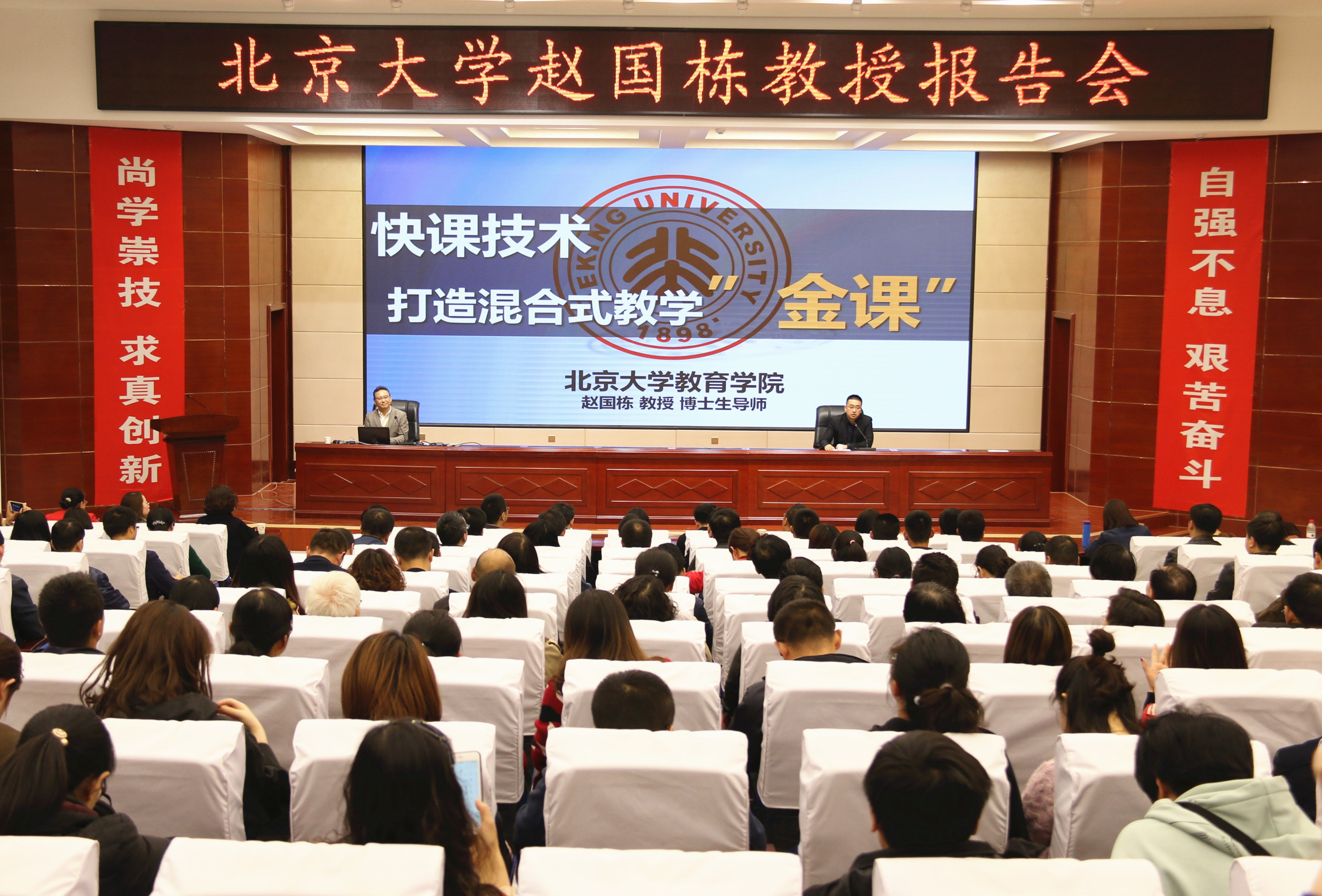4月15日,北京大學(xué)博士生導(dǎo)師,微課技術(shù)實驗室主任,“國際信息研究學(xué)會”(IS4IS)中國分會教育信息化專業(yè)委員會副主任, “中國開放式教育資源協(xié)會”(CORE)專家趙國棟教授,應(yīng)邀到學(xué)院作專題報告。 教務(wù)處副處長張世亮主持報告會,甘肅冶金職業(yè)技術(shù)學(xué)院、甘肅畜牧工程學(xué)院、武威職業(yè)教育集團、蘭州交通大學(xué)新能源與動力工程學(xué)院以及各系教師代表220人聆聽了報告。