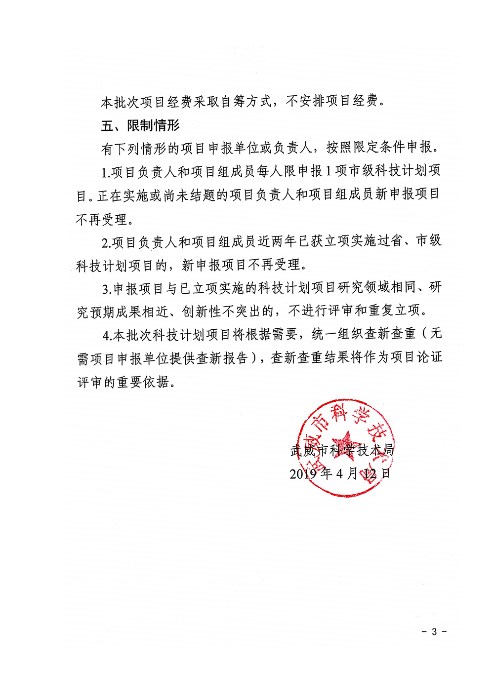 轉(zhuǎn)發(fā)武威市科學(xué)技術(shù)局關(guān)于組織申報2019年度第一批市級科技計劃項目的通知