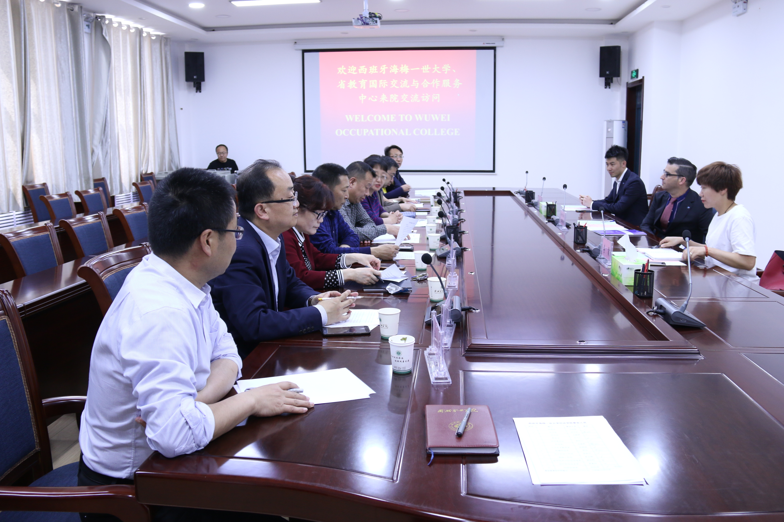 座談會上,田迎春代表全院師生對海梅一世大學回訪學院表示歡迎,對海梅一世大學時隔一年再次訪問學院表示敬佩,對省國際交流與合作服務(wù)中心對學院的關(guān)心表示感謝,并向來訪客人簡要介紹了學院建設(shè)發(fā)展情況、學科專業(yè)設(shè)置、學院國際交流與合作開展情況。來訪客人對學院友好熱情的工作安排表示感謝,對學院積極致力于開展國際合作與交流的努力和遠見表示贊賞。賓主雙方通過PPT展示、VIDEO播放等形式介紹了各自基本情況,雙方共同希望能夠采取切實可行的舉措,進一步深化務(wù)實合作,落實兩校簽署的合作框架協(xié)議。賓主雙方還就校際交流、師資互訪、語言培訓、赴西班牙專升碩留學項目等共同關(guān)心的問題進行了深入交流。