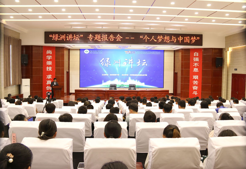 4月26日上午,學(xué)院主辦的中科低碳新能源技術(shù)學(xué)院“綠洲講壇”第11講在菁英廳舉行,本期活動(dòng)邀請(qǐng)到國(guó)家一級(jí)作家、中國(guó)作家協(xié)會(huì)會(huì)員、甘肅省作家協(xié)會(huì)副主席、中國(guó)延安文藝學(xué)會(huì)副會(huì)長(zhǎng)陳玉福做《我的夢(mèng)與中國(guó)夢(mèng)》專題講座。中科低碳新能源技術(shù)學(xué)院2018級(jí)實(shí)驗(yàn)班全體學(xué)生、學(xué)院各系學(xué)生代表、各系輔導(dǎo)員共220名師生參加了活動(dòng),講座活動(dòng)由學(xué)院黨委委員、副院長(zhǎng)翟存祥教授主持。