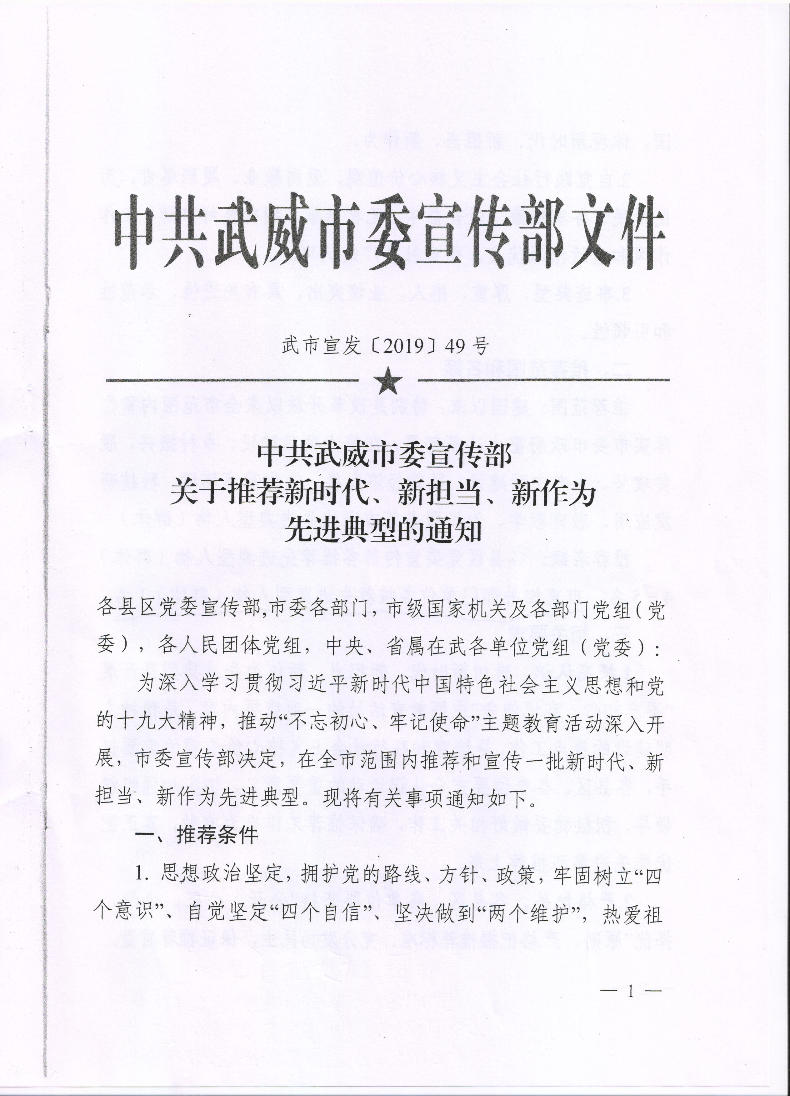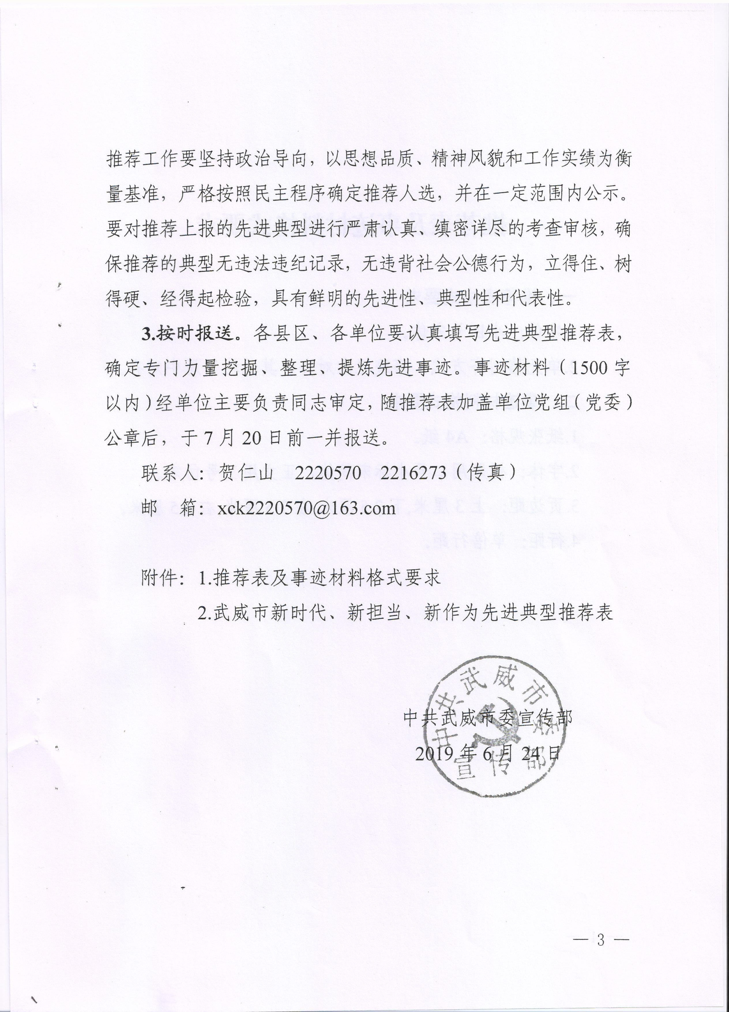 附件:《中共武威市委宣傳部關(guān)于推薦新時代、新?lián)敗⑿伦鳛橄冗M典型的通知》