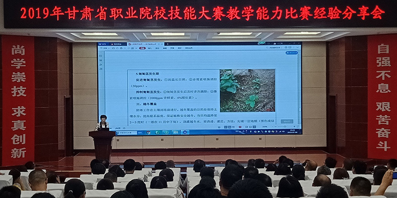 分享會(huì)由翟存祥副院長(zhǎng)主持,并就本次參賽意義作了深刻點(diǎn)評(píng),鼓勵(lì)中青年骨干教師積極參賽,以賽促學(xué)、以賽促教。教務(wù)處副處長(zhǎng)張世亮介紹了甘肅省2019年職業(yè)院校技能大賽教學(xué)能力比賽規(guī)則和基本流程。邀請(qǐng)參賽優(yōu)秀教師團(tuán)隊(duì)分享參賽作品《耕耘天地間 綠色齊分享》《聲傳意調(diào)頌情 傳播中國(guó)聲音》和《堅(jiān)守規(guī)則 守護(hù)生命安全》,展示教學(xué)資料、模擬現(xiàn)場(chǎng)比賽過(guò)程、分享比賽經(jīng)驗(yàn)。