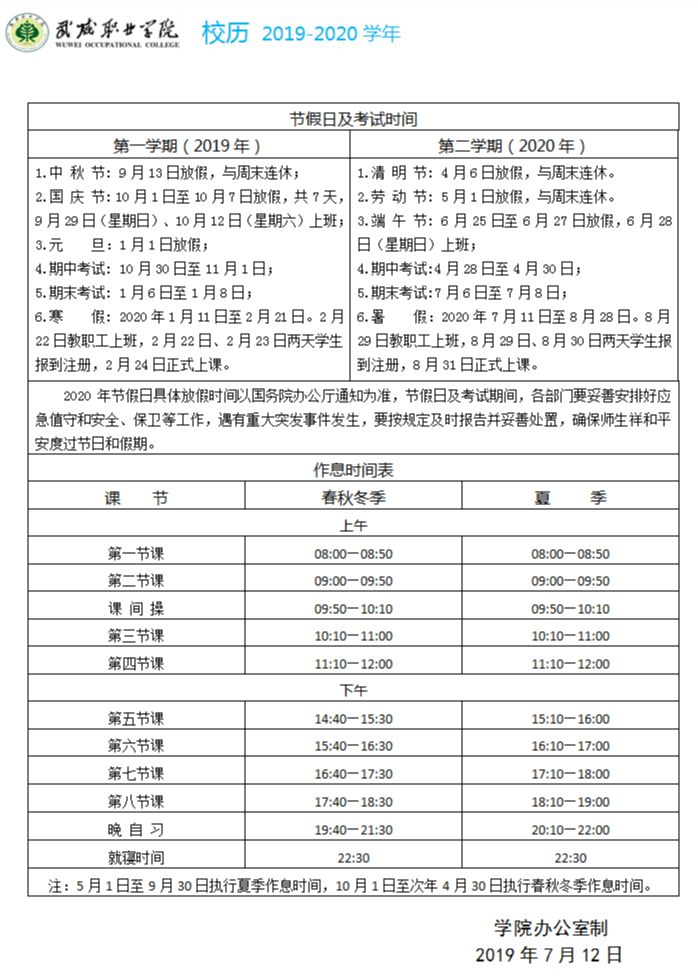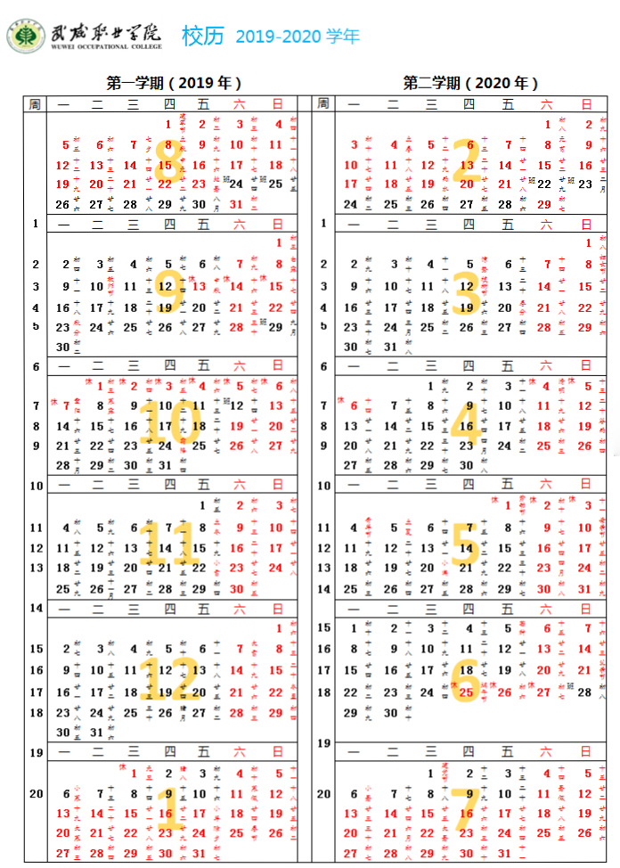 2019-2020學(xué)年校歷