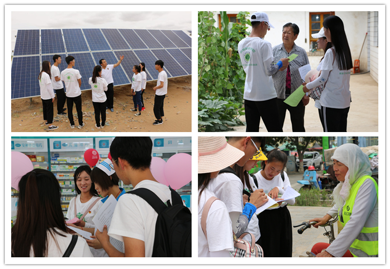 7月17-18日,實踐團前往武威泰豐新能源扶貧電站,了解"光伏+農(nóng)業(yè)"工程實施、電站運維管理情況,了解實施光伏扶貧項目在脫貧攻堅、造福廣大貧困群眾中帶來的良好經(jīng)濟效益、生態(tài)效益和社會效益。參觀結(jié)束后團隊成員深入武威市各社區(qū)、周邊鄉(xiāng)鎮(zhèn)發(fā)放宣傳資料、折頁,開展低碳環(huán)??破招麄骰顒?。通過現(xiàn)場答題的形式與市民互動,普及更多日常綠色環(huán)保生活知識,引導(dǎo)社會公眾綠色低碳消費,為建設(shè)低碳環(huán)保社區(qū)打下良好的基礎(chǔ)。