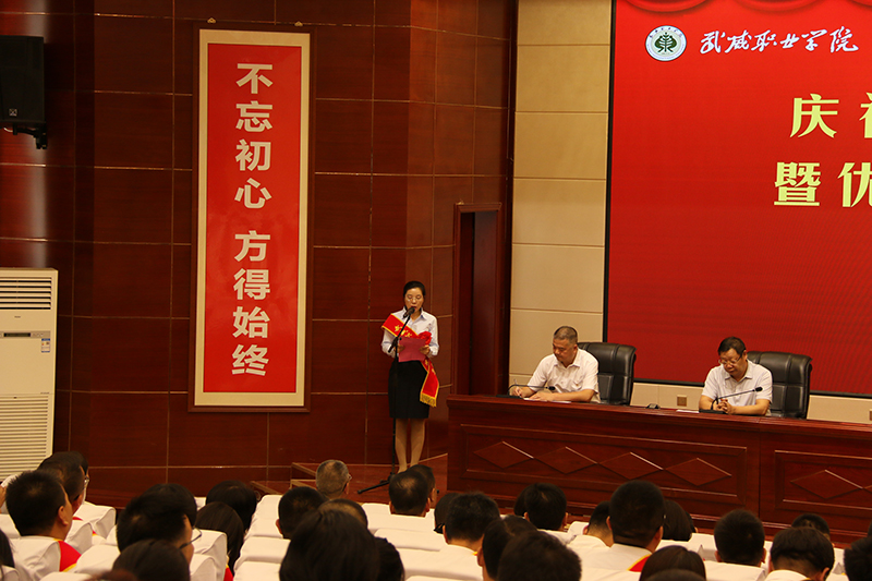 黨委副書記翟存祥宣讀《關(guān)于表彰優(yōu)秀教師、優(yōu)秀教育工作者的決定》,紀(jì)委書記張富國宣讀《關(guān)于表彰2018-2019學(xué)年度教學(xué)能力(技能)競賽獲獎(jiǎng)教師的決定》,副院長田迎春宣讀《關(guān)于表彰2018-2019學(xué)年度學(xué)生技能競賽獲獎(jiǎng)學(xué)生指導(dǎo)教師的決定》,副院長王守云宣讀《關(guān)于表彰招生、就業(yè)先進(jìn)個(gè)人的決定》。學(xué)院領(lǐng)導(dǎo)為優(yōu)秀教師代表、優(yōu)秀教育工作者代表、招生就業(yè)工作先進(jìn)個(gè)人頒發(fā)了榮譽(yù)證書。