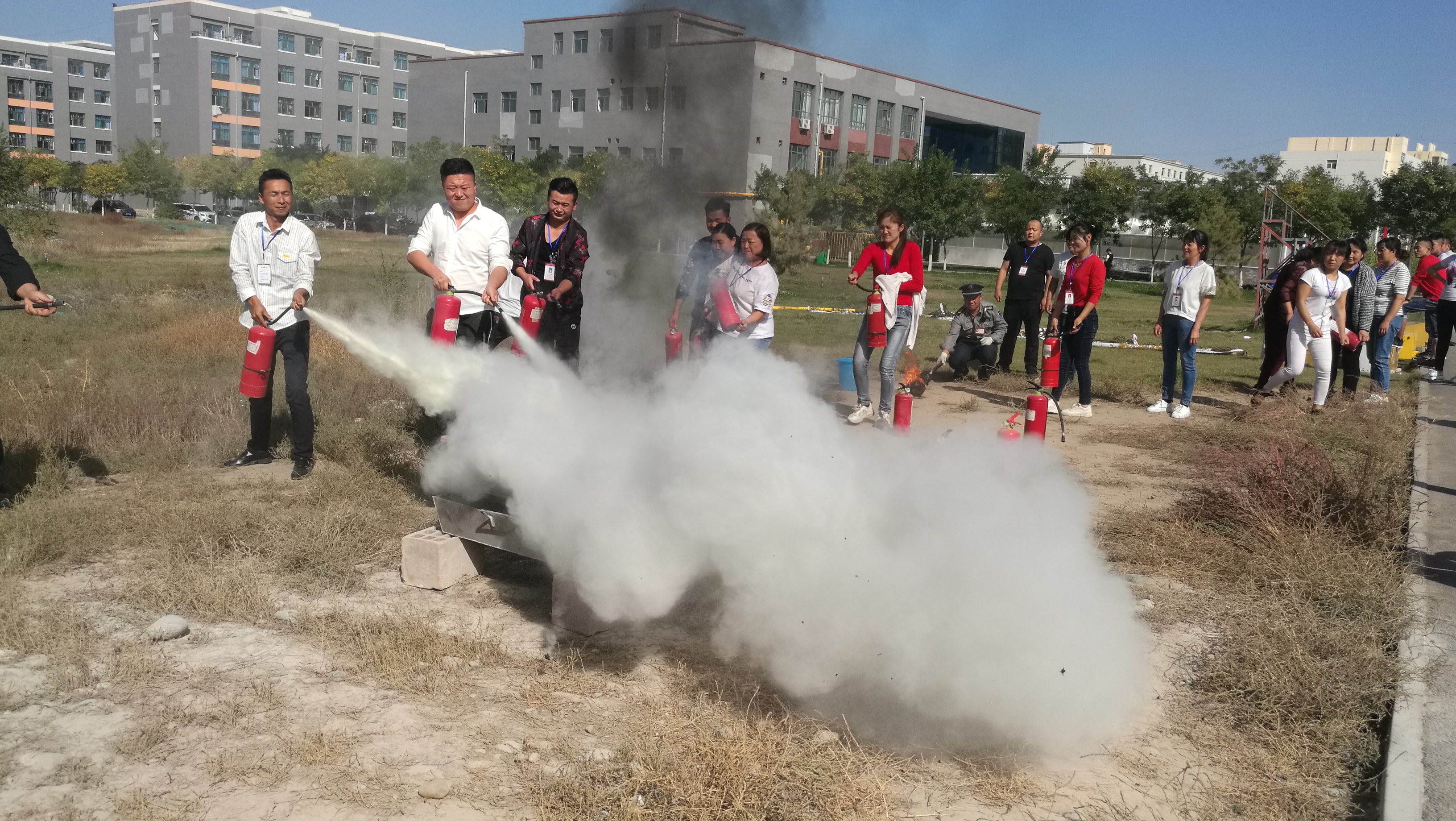 培訓(xùn)中,保衛(wèi)處負(fù)責(zé)人向參加人員講解了火災(zāi)應(yīng)急處置、消防設(shè)施使用及維護(hù)等方面的知識。隨后,所有參加人員在操場空地進(jìn)行了干粉滅火器滅火演練,每位參加人員都情緒飽滿、積極參與,最終有序完成了培訓(xùn)。