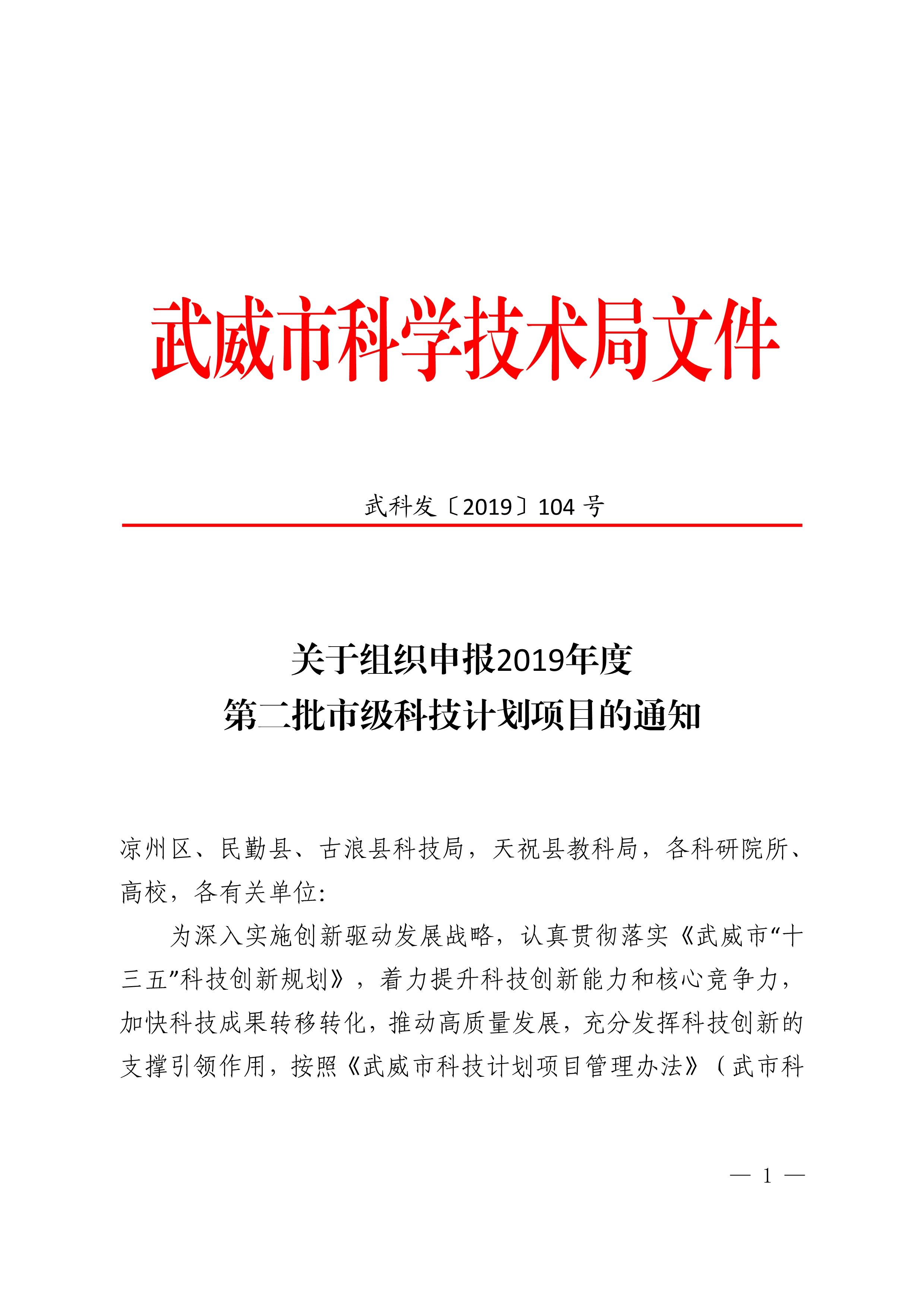 轉(zhuǎn)發(fā)武威市科學技術局關于組織申報2019年度第二批市級科技計劃項目的通知