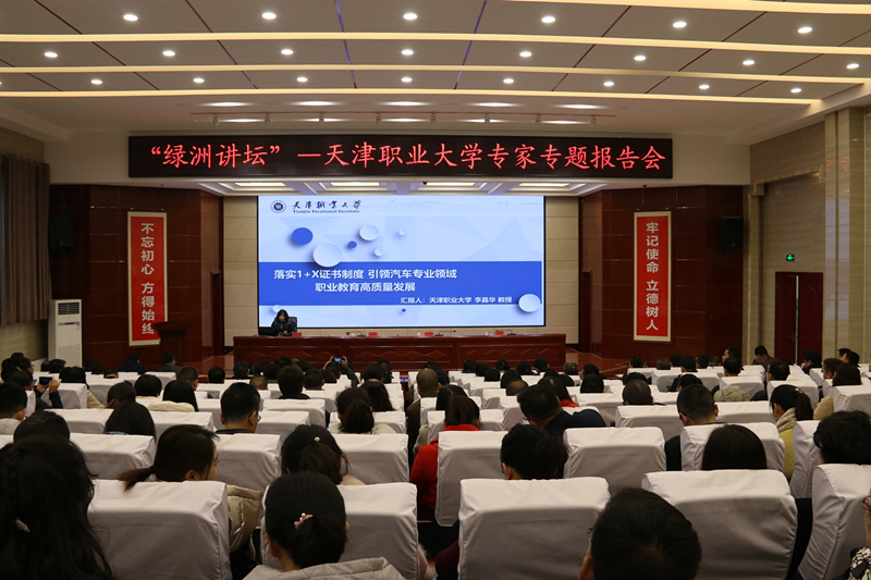 報告會上,天津職業(yè)大學副校長楊榮敏、天津職業(yè)大學合作教育辦公室王昆教授、天津職業(yè)大學汽車工程學院院長、博士、汽車維修技師李晶華教授分別做了題為《魯班工坊——中國職業(yè)教育國際知名品牌》《產業(yè)學院融入思政元素路徑與實踐》《落實1+X證書制度,引領汽車專業(yè)領域職業(yè)教育高質量發(fā)展》的報告。學院領導和副科級以上中層管理干部、各系教研室主任、骨干教師、青年教師代表參加報告會。