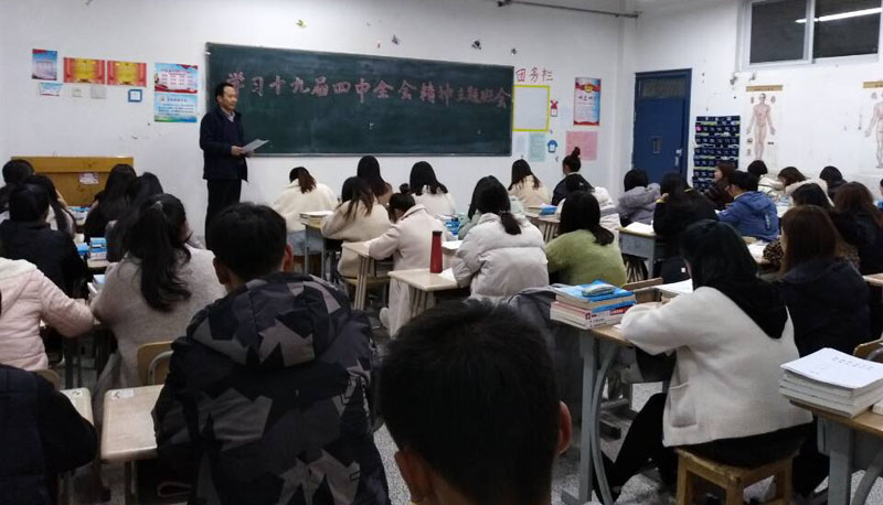 11月底,藥學系組織班主任進教室,以主題班會形式宣講十九屆四中全會精神,使全會精神全員覆蓋。