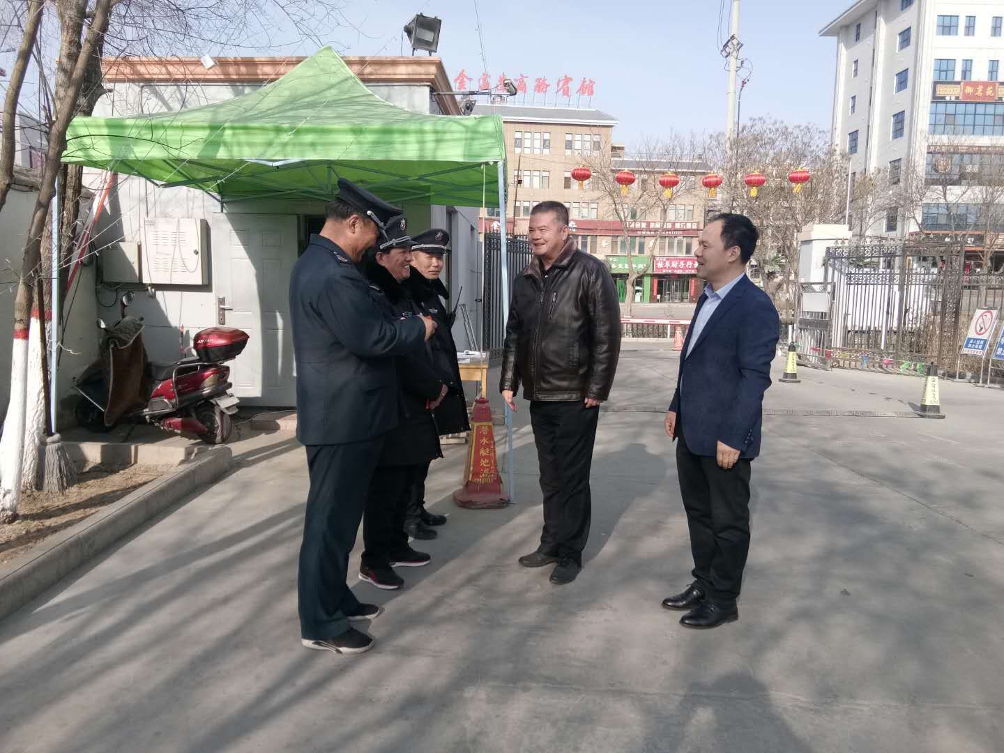 1月24日下午,學(xué)院副院長(zhǎng)王守云帶領(lǐng)相關(guān)部門負(fù)責(zé)同志到疫情防控值班室、各門崗、鍋爐房、開水房等,看望慰問(wèn)春節(jié)期間一線值班人員,為他們送去節(jié)日的問(wèn)候和新春的祝福。