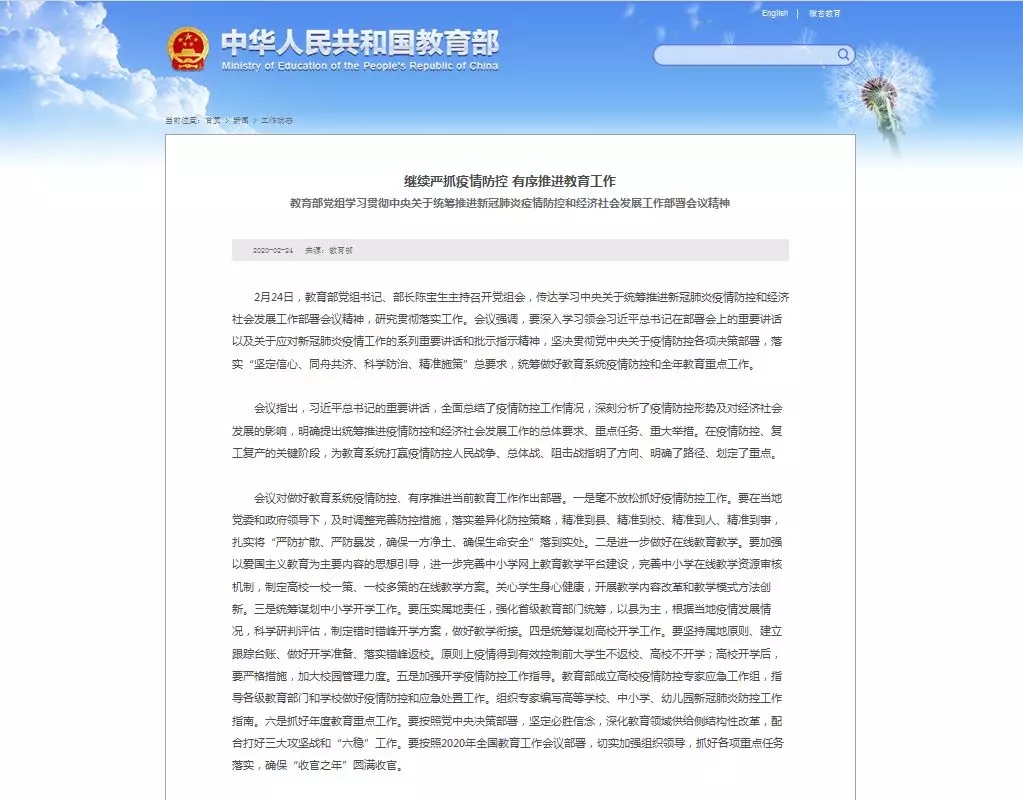 作者: 來源:教育部官網(wǎng) 發(fā)布時(shí)間:2020年02月25日 點(diǎn)擊數(shù):768 字號(hào):【