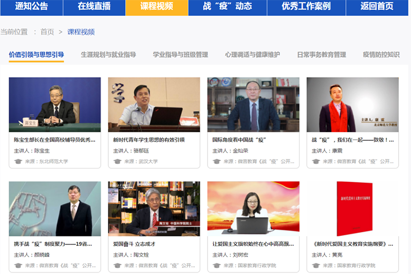 為推進(jìn)當(dāng)前教育系統(tǒng)疫情防控和學(xué)生思想政治教育工作,由教育部主辦,高校思想政治工作隊伍培訓(xùn)研修中心承辦的“共抗疫情顯擔(dān)當(dāng),愛國力行育新人”全國高校輔導(dǎo)員網(wǎng)絡(luò)培訓(xùn)示范班開班。