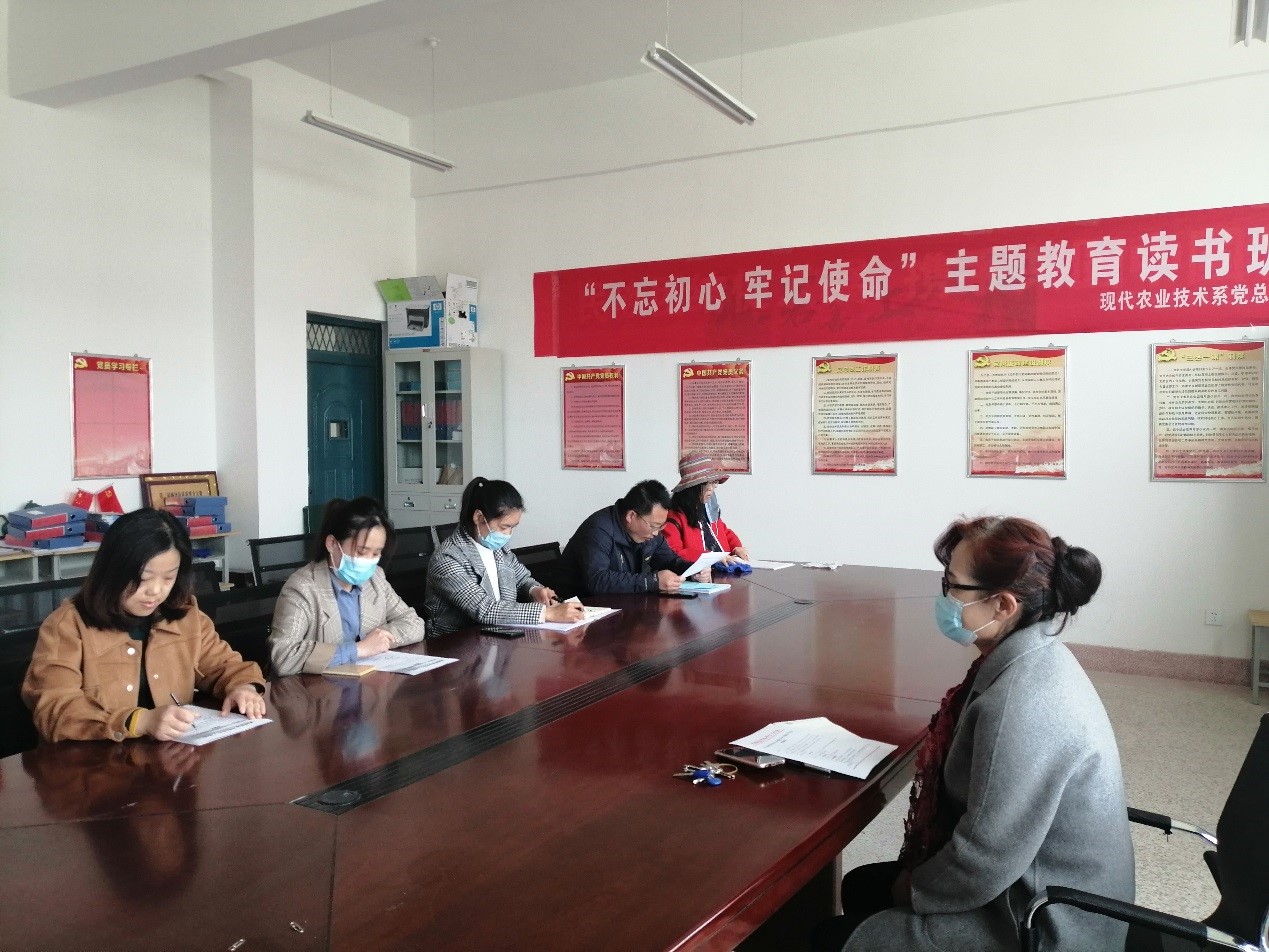 4月22日下午,現代農業(yè)技術系在行樹樓教學區(qū)309會議室召開班主任工作會議,全體班主任及輔導員參加了此次會議,會議由現代農業(yè)技術系黨總支書記晏素珍同志主持。