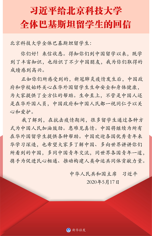 專題會后,國際合作與交流處工作人員組織留學生召開學習貫徹習近平總書記給北京科技大學全體巴基斯坦留學生回信精神專題視頻座談會。會議要求,全體留學生要認真學習回信,要深刻領(lǐng)會回信的重大意義,要深刻領(lǐng)會回信的真情實感。留學生們一致對學院在新冠肺炎疫情暴發(fā)后給予的關(guān)心表示感謝,表示學有所成后要投身“一帶一路”建設(shè)、為增進中外友誼做出貢獻。