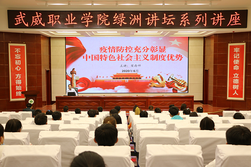 6月9日,武威職業(yè)學院“綠洲講壇”第33期在學院菁英廳舉行,學院黨委副書記翟存祥教授作了題為《疫情防控充分彰顯中國特色社會主義制度優(yōu)勢》的講座。中科低碳新能源技術(shù)學院師生代表共150余人參加了報告會。