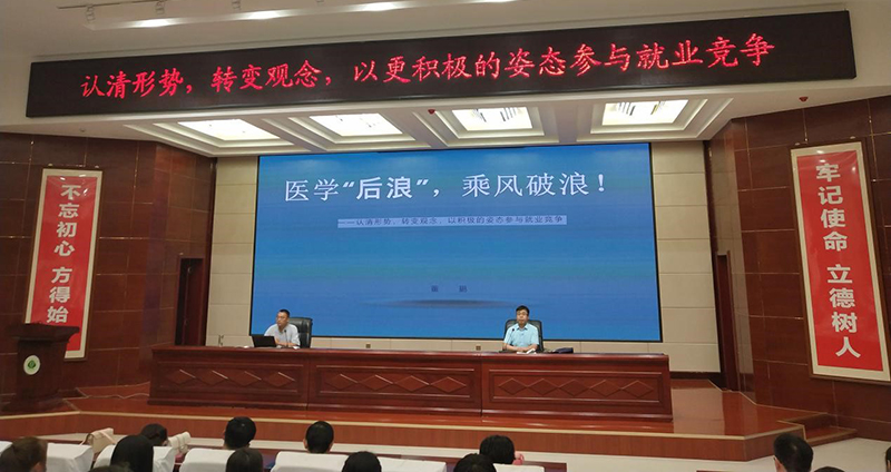 7月12日晚,護(hù)理系在大學(xué)生活動中心菁英廳、明遠(yuǎn)樓211、213、311等四個會場舉辦“護(hù)理系2021屆畢業(yè)生就業(yè)指導(dǎo)講座”,邀請學(xué)院招生就業(yè)處副處長董鵬同志作“醫(yī)學(xué)后浪、乘風(fēng)破浪”為主題的專題講座。護(hù)理系黨總支書記張建輝主持講座,護(hù)理系2021屆畢業(yè)班班主任、全體輔導(dǎo)員及2021屆全體畢業(yè)生共計647人參加講座。