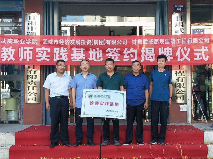 2020年8月9日,學院聯(lián)合武威市經(jīng)濟發(fā)展(集團)有限公司、甘肅武威高壩建筑工程有限公司,在甘肅武威高壩建筑工程有限公司大樓前舉行武威職業(yè)學院教師實踐基地簽約揭牌儀式。學院黨委書記、院長趙明,基建處負責人賈龍,建筑工程系副主任蔡濟眾,黨建負責人孫潤元;武威市經(jīng)濟發(fā)展(集團)有限公司董事長崔國斌、副董事長董英,甘肅武威高壩建筑工程有限公司總經(jīng)理周勝年出席簽約揭牌儀式。