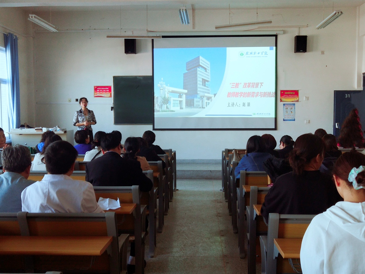 赴揚州參加學(xué)習(xí)的護理系基礎(chǔ)教研室教師趙穎就8月16日至22日期間的學(xué)習(xí)內(nèi)容向大家作了詳細(xì)匯報。此次匯報的內(nèi)容主要包括題目解析和“三教”改革的對策與舉措兩大部分。趙穎借助PPT,通過生動的語言,詳實的例子,結(jié)合我系實際情況,分享交流有關(guān)《“三教”改革背景下教師教學(xué)的新需求與新挑戰(zhàn)》的學(xué)習(xí)內(nèi)容,傳遞了職業(yè)教育改革和發(fā)展信息化發(fā)展的方向,介紹了“三教”改革背景下教師教育教學(xué)面對的新要求、新挑戰(zhàn)以及教師如何應(yīng)對這些挑戰(zhàn)并將自己的學(xué)習(xí)心得體會與大家作了分享。