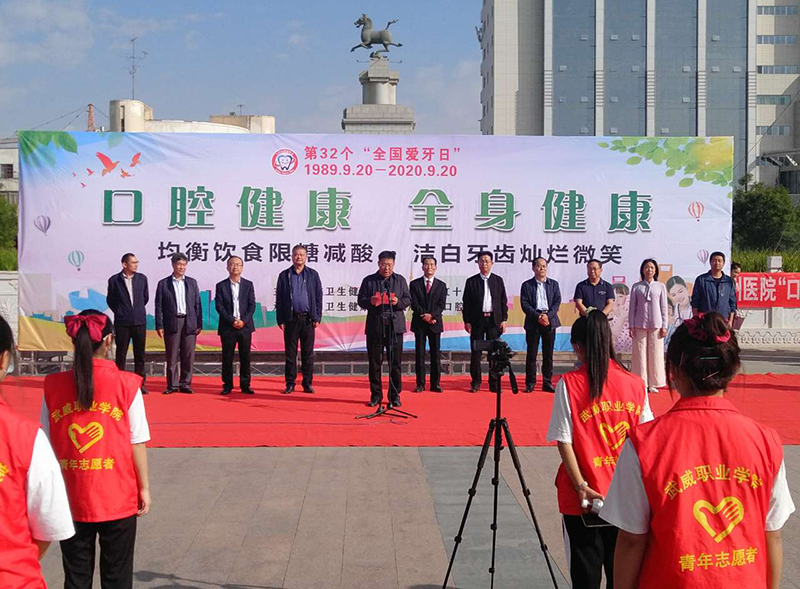 2020年9月20日是第32個(gè)“全國愛牙日”,為進(jìn)一步普及口腔健康知識(shí),結(jié)合今年全國愛牙日“口腔健康,全身健康”的主題,9月20日上午,由武威市衛(wèi)生健康委員會(huì)、武威市紅十字協(xié)會(huì)牽頭在文化廣場組織開展了“9.20全國愛牙日”主題宣傳活動(dòng)。學(xué)院黨委委員、副院長王守云、醫(yī)學(xué)技術(shù)與信息管理系黨總支書記黃文源及醫(yī)學(xué)技術(shù)與信息管理系100多名口腔醫(yī)學(xué)技術(shù)專業(yè)學(xué)生參加了志愿服務(wù)活動(dòng)。