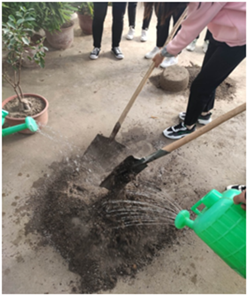 種植體驗活動前,為了讓學生更好地了解種植知識,張老師給同學們講解了植物種植的條件、如何根據(jù)季節(jié)選擇種植的種類,以及育苗、澆水、施肥、防蟲過程中的注意事項。在活動中,學生與老師合作完成種菜任務,一起探討種植經驗、勞動技能。