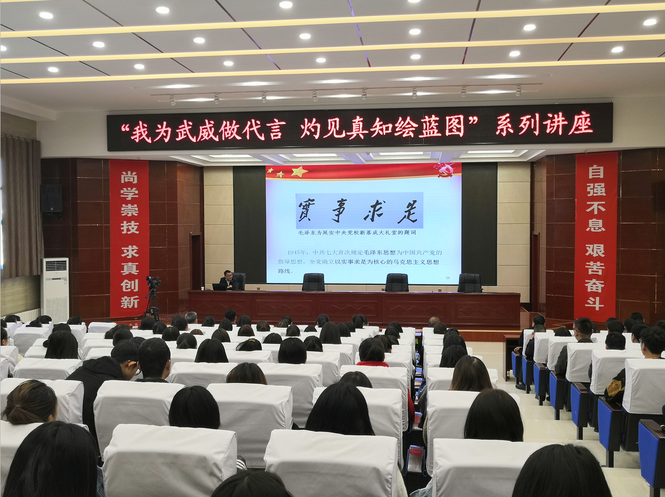 3月16日,武威職業(yè)學院“綠洲講壇”第12期在學院菁英廳舉行,本期活動邀請到中國社科院哲學研究所副研究員、民勤縣委副書記周丹作主題為《掌握看家本領(lǐng) 堅定理想信念》的報告。學院領(lǐng)導班子、中層干部、師生代表220余人參加了報告會。