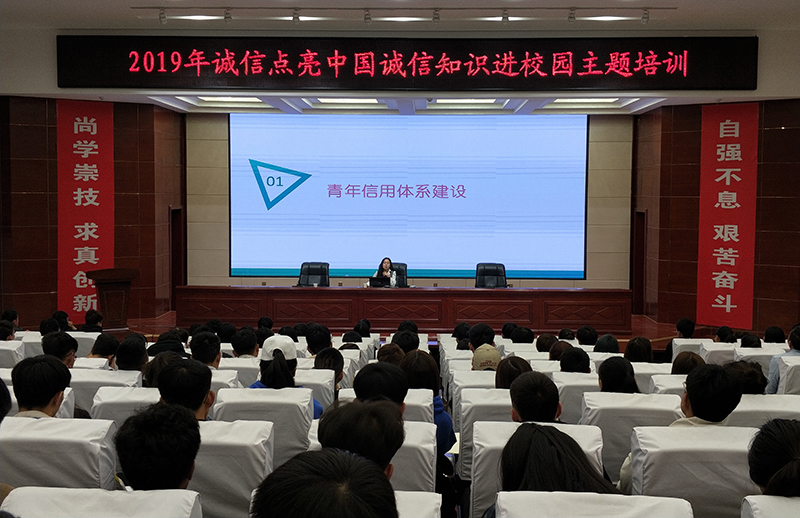 為進一步拓寬誠信知識宣傳的深度和廣度,提升我院青年學(xué)生的誠信意識,增強同學(xué)們信用理念和防范重大風險的意識, 3月30日上午,2019年“誠信點亮中國”誠信知識進校園活動在菁英廳舉辦,團省委青年信用體系建設(shè)領(lǐng)導(dǎo)小組辦公室主任高振葉作了《青年信用體系建設(shè)與志愿中國》主題講座,團市委少工委副主任許娜出席活動,院團委教師和220學(xué)生代表參加了培訓(xùn)。
