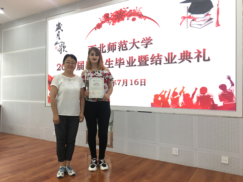 畢業(yè)典禮在留學(xué)生視頻播放中開(kāi)始,視頻內(nèi)容真實(shí),情真意切,如實(shí)記錄了留學(xué)生在華學(xué)習(xí)、生活的點(diǎn)點(diǎn)滴滴,展示了“一帶一路”合作倡議下教育對(duì)外開(kāi)放的成果。西北師范大學(xué)國(guó)際文化交流學(xué)院書記李東海宣讀結(jié)業(yè)生名單,我院19級(jí)5名留學(xué)生赫然在列。西北師范大學(xué)國(guó)際合作與交流處處長(zhǎng)王君朝向留學(xué)生祝詞,對(duì)留學(xué)生經(jīng)過(guò)努力學(xué)習(xí)、順利畢業(yè)表示衷心祝賀。留學(xué)生代表用流利漢語(yǔ)發(fā)言,既反映了漢語(yǔ)學(xué)習(xí)的效果,也表達(dá)了對(duì)漢語(yǔ)學(xué)習(xí)生活的留戀,對(duì)學(xué)校培育的感激,對(duì)中國(guó)政府和中國(guó)人民對(duì)外友好的真心感謝。留學(xué)生在激動(dòng)喜悅的心情中領(lǐng)取了結(jié)業(yè)證書及紀(jì)念品。