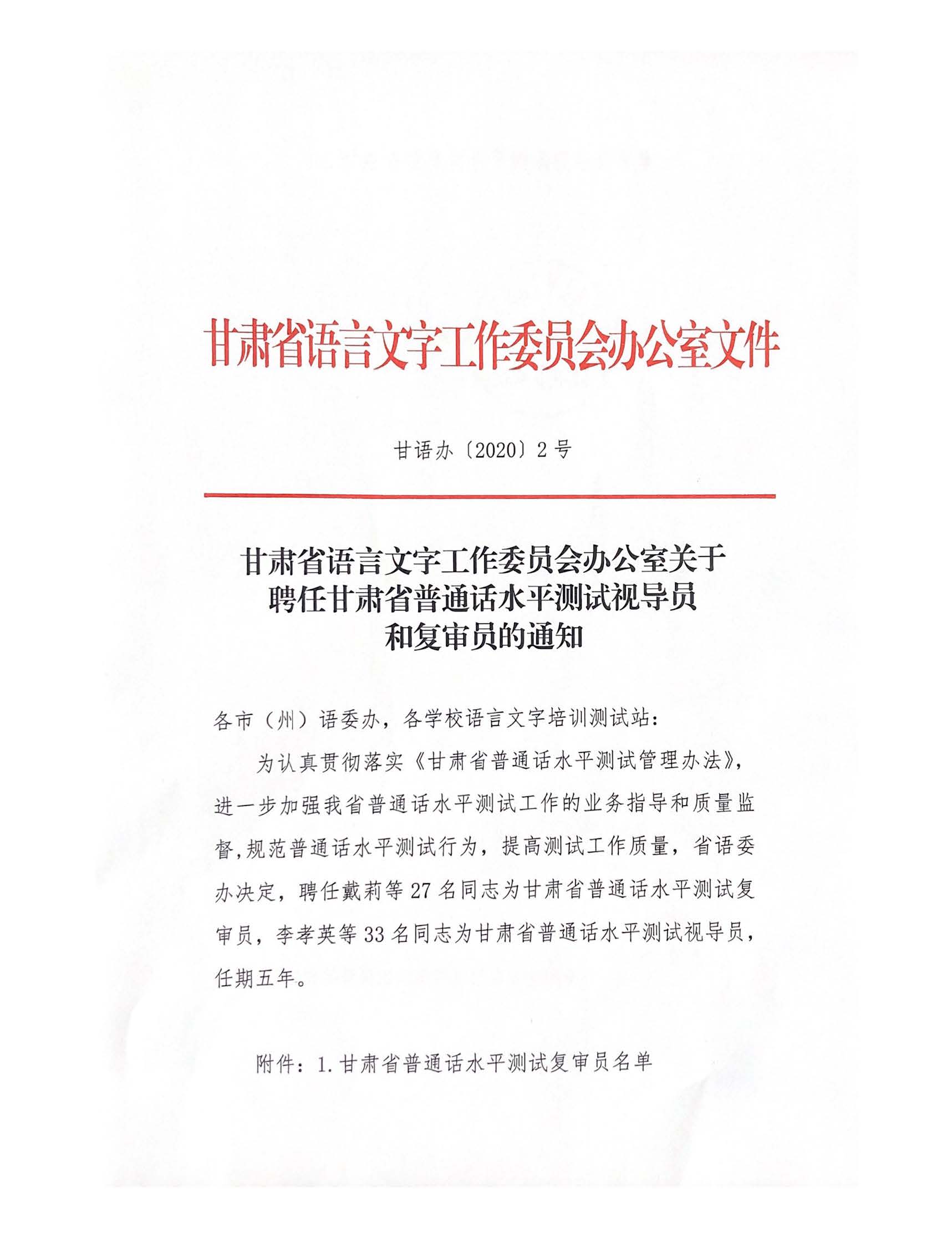 6月24日,我院護理系教師趙穎教授獲得甘肅省普通話水平測試復審員資格。根據(jù)《甘肅省語言文字工作委員會辦公室關于聘任甘肅省普通話水平測試視導員和復審員的通知》評選條件,學院組織推薦趙穎老師為“甘肅省普通話水平測試復審員”。經(jīng)甘肅省語言文字工作委員會評審,趙穎老師獲得甘肅省普通話水平測試復審員”資格,這是我院語言文字工作方面產(chǎn)生的第一位“省級測試復審員”。